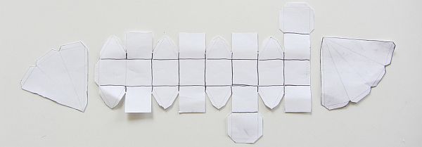 Zu guter Letzt wagte ich mich zum dritten schmückend an meine eigene spitzengekrönte Konstruktion. Ein Bauplan, viel Gefalte, die Laschen hielten nicht immer, was sie sollten. Doch steht er nun und leuchtet golden durch unser Haus.